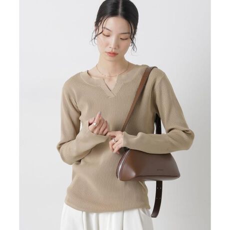 大人っぽい印象が楽しめるリブニットトップス。凹凸感のある編地で縦ラインを強調し、伸縮性があるため身体のラインを拾いにくくすっきりとしたシルエットに。洗濯機洗い可能で、様々なボトムと合わせやすくデイリーユースに活躍する一枚です。