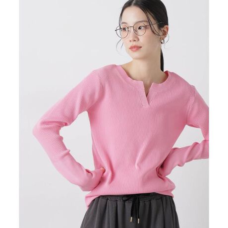 大人っぽい印象が楽しめるリブニットトップス。凹凸感のある編地で縦ラインを強調し、伸縮性があるため身体のラインを拾いにくくすっきりとしたシルエットに。洗濯機洗い可能で、様々なボトムと合わせやすくデイリーユースに活躍する一枚です。