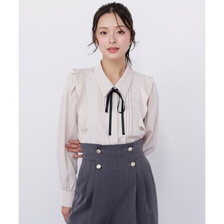 エレガントでフェミニンな雰囲気を叶えるリボン付きピンタックブラウス。ピンタックデザインが、繊細で上品な印象を与えてくれます。リボンが付いたネックラインは、可愛らしさと華やかさを両立。シンプルながらもおしゃれなコーディネートが完成します。仕事やちょっとした食事など、様々シーンで活躍してくれます。※撮影時照明の関係により、色味が違って見える場合がございます。またパソコン・スマートフォンなどの環境により、若干製品と画像のカラーが異なる場合もございます。予めご了承ください。商品の色味は、商品単品画像をご参照下さい。※商品画像はサンプルのため、色味やサイズ等の仕様に変更がある場合がございますので、予めご了承ください。