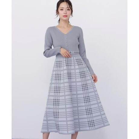 ロングシーズン活躍してくれる、ドライタッチで軽くてハリのある糸を使用したニットワンピース。トップスはリブ編みですっきりと、ハイウエストのスカート部分はフレアシルエットがキレイに出るジャガード編みで、ドッキング風のデザインになっています。Dカンベルトでウエストマークができ、一枚でスタイルアップが叶います。オリジナルのビッグチェック柄を使用した春らしい3色展開です。※撮影時照明の関係により、色味が違って見える場合がございます。またパソコン・スマートフォンなどの環境により、若干製品と画像のカラーが異なる場合もございます。予めご了承ください。商品の色味は、商品単品画像をご参照下さい。※商品画像はサンプルのため、色味やサイズ等の仕様に変更がある場合がございますので、予めご了承ください。
