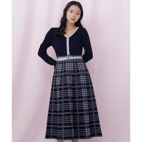 ロングシーズン活躍してくれる、ドライタッチで軽くてハリのある糸を使用したニットワンピース。トップスはリブ編みですっきりと、ハイウエストのスカート部分はフレアシルエットがキレイに出るジャガード編みで、ドッキング風のデザインになっています。Dカンベルトでウエストマークができ、一枚でスタイルアップが叶います。オリジナルのビッグチェック柄を使用した春らしい3色展開です。※撮影時照明の関係により、色味が違って見える場合がございます。またパソコン・スマートフォンなどの環境により、若干製品と画像のカラーが異なる場合もございます。予めご了承ください。商品の色味は、商品単品画像をご参照下さい。※商品画像はサンプルのため、色味やサイズ等の仕様に変更がある場合がございますので、予めご了承ください。