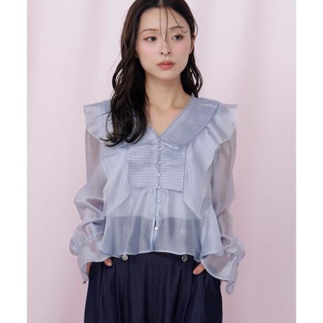 プリーツとフリルを贅沢に取り入れた主役級ブラウス。シアー感のあるオーガンジー素材を使用した華やかな一枚です。透け感のある素材でもインナーキャミソール付きで安心の着用感。程よく広がるペプラムシルエットなので、ウエストインでもアウトでも決まるデザインです。フェミニンで軽やかな春のスタイリングにおすすめです。※撮影時照明の関係により、色味が違って見える場合がございます。またパソコン・スマートフォンなどの環境により、若干製品と画像のカラーが異なる場合もございます。予めご了承ください。商品の色味は、商品単品画像をご参照下さい。※商品画像はサンプルのため、色味やサイズ等の仕様に変更がある場合がございますので、予めご了承ください。