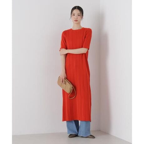 凹凸感のあるランダムリブ編みが縦ラインを強調しすっきりとしたニットワンピース。洗濯機洗い可能で、デイリーに気兼ねなく着用できるのも嬉しいポイント。シンプルなデザインで1枚着からレイヤードまでロングシーズン活躍します。