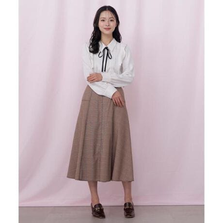 配色ステッチがアクセントになった、メリハリのある上品見えフレアスカート。ウエストベルト付きで腰位置を高く見せ、スタイルアップ効果を期待できます。歩くたびにふわりと広がる美しいシルエットが魅力。オンでもオフでも活躍できるデザインは、シンプルトップスと合わせるだけで洗練された印象に見せてくれます。※撮影時照明の関係により、色味が違って見える場合がございます。またパソコン・スマートフォンなどの環境により、若干製品と画像のカラーが異なる場合もございます。予めご了承ください。商品の色味は、商品単品画像をご参照下さい。※商品画像はサンプルのため、色味やサイズ等の仕様に変更がある場合がございますので、予めご了承ください。