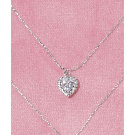 繊細なハートモチーフが首元を飾るネックレス。華奢なチェーンと品よく輝くハートストーンが、どんなスタイルにもマッチしてくれます。ご自身用はもちろんプレゼントにもお勧めです。【Cubicシリーズ】Cubicジルコニアはダイヤモンドに極めて近い輝きをもつ人工石でダイヤのように多数のカットを施す事でより繊細で強い輝きをはなちます。Cubicシリーズはグレーのボックスとショッパーが付属しております。※撮影時照明の関係により、色味が違って見える場合がございます。またパソコン・スマートフォンなどの環境により、若干製品と画像のカラーが異なる場合もございます。予めご了承ください。商品の色味は、商品単品画像をご参照下さい。※商品画像はサンプルのため、色味やサイズ等の仕様に変更がある場合がございますので、予めご了承ください。