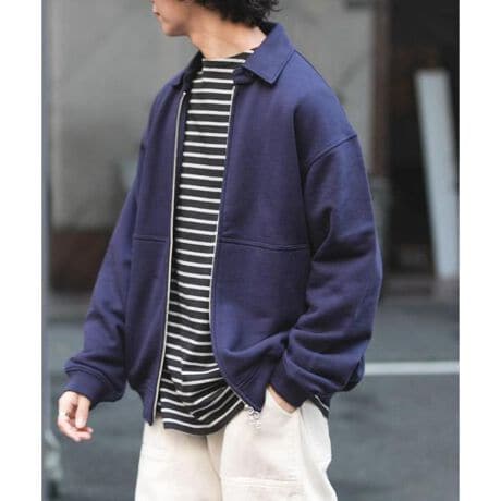 羽織でもジップを閉めてスウェットトップスとしても使える万能な一着です。