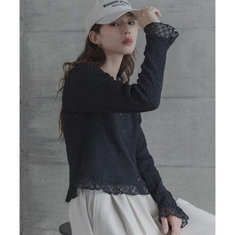 袖口と裾にフリルをあしらい、甘さは控えめにしつつもさりげないポイントに。