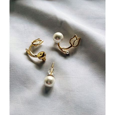 お花とパールがついたキャッチがめずらしく、まるでイヤーカフをつけているようなデザイン。