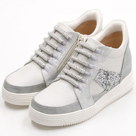 [型番:XJ7847]■■チューブビジュウインヒールスニーカー ■■【おすすめPOINT】・全面0.5cmの低反発インソールを使用・スタイルアップ可能な3.5cmインヒール入り・足首周りのスポンジで足当たりソフトに・甲にあしらった6本のチューブビジュウがキラキラと輝く・内側ファスナーで脱ぎ履きも楽ちん