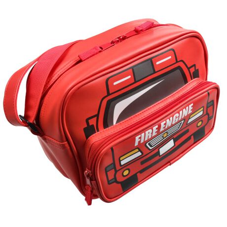 ショルダータイプの通園バッグ・幼稚園バック。ブラックはパトカー、レッドは消防車デザイン。男の子が大好きな働く車がかっこいい!外にも内側にもポケットがあります!【アイテム】雑貨 カジュアル お洒落 オシャレ かっこいい かわいい 可愛い 普段着 デイリーウェア お出かけ 子ども こども 男児 男の子 ボーイズ キッズ ベビーサイズ トドラーサイズ 幼稚園 保育園 小学校 通園 通学 小学生 遠足 旅行 2026年春夏物新作 丸高衣料 小物 入園入学準備品 ブラック 黒色 レッド 赤色 キッズフォーレ