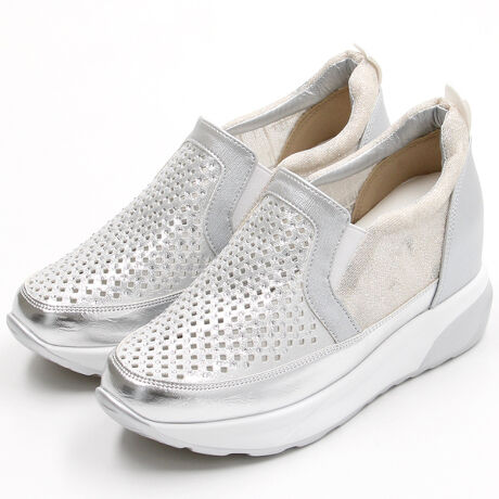 [型番:WX9885]■■パンチングチュールインヒールスリッポンスニーカー■■MUUMで人気のパンチングスリッポンからNEWバージョンが新登場!【おすすめPOINT】・全面0.5cmの低反発インソール入り・パンチングにラインストーンを乗せてキラキラに・側面のチュールがかわいさをプラス・トップラインはスポンジ入りで足首周りをサポート・ヒール4.0cm+インヒール3.0cm=7.0cmヒールでこっそり美脚