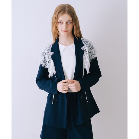 クラシックなダブルジャケットに、繊細なレースを組み合わせたデザイン。
