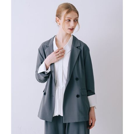 クラシックなダブルジャケットに、繊細なレースを組み合わせたデザイン。