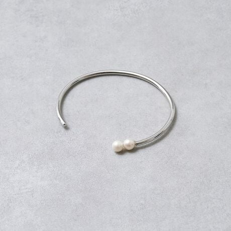 滑らかなメタルラインにパールをあしらった、上品な印象のバングル。