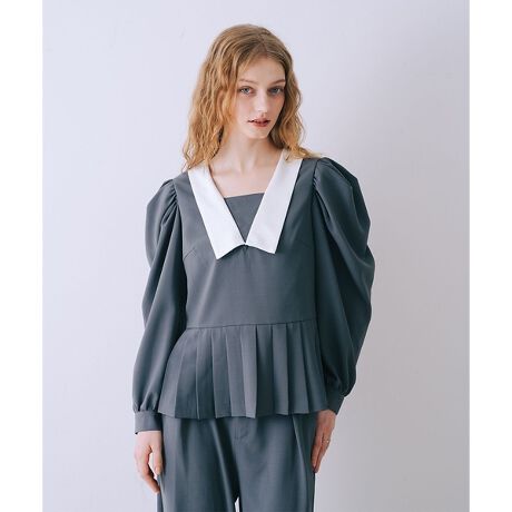 配色デザインのセーラーカラーが目を惹く、クラシカルムード漂うトップス。