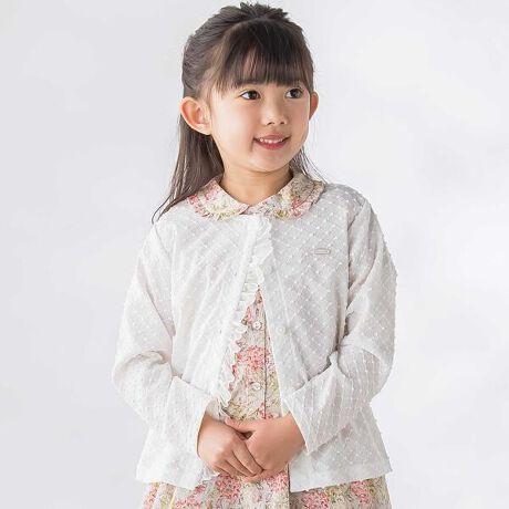 上品な透かし編み風のテクスチャが魅力の女の子用カーディガン。