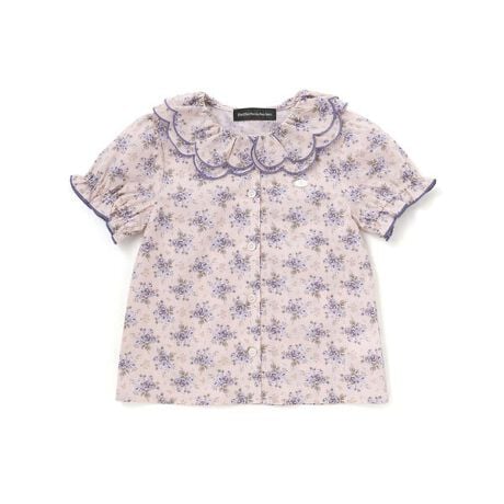 繊細なバラ柄が可愛らしい、上品な半袖ブラウス。