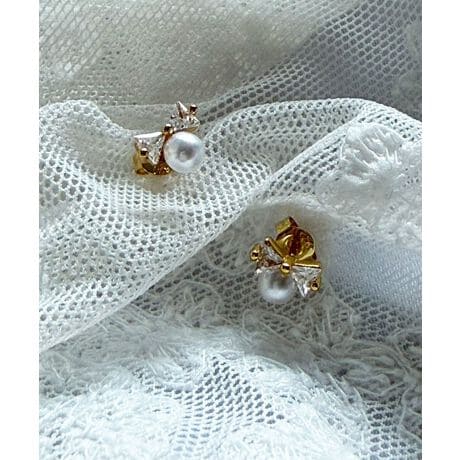 リボンとパールの可愛い組み合わせに思わず手に取りたくなるピアス。
