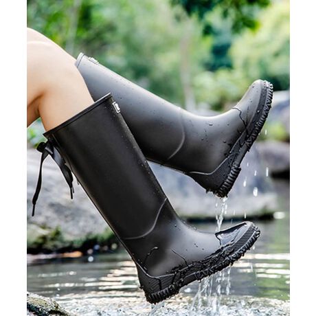 リボン付き中高筒レインブーツ