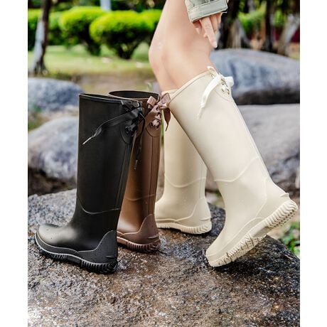 リボン付き中高筒レインブーツ