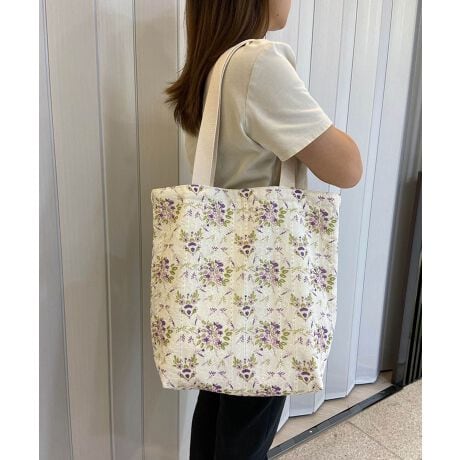 華やかな花柄と繊細なレース刺繍が目を惹くフェミニントートバッグ。