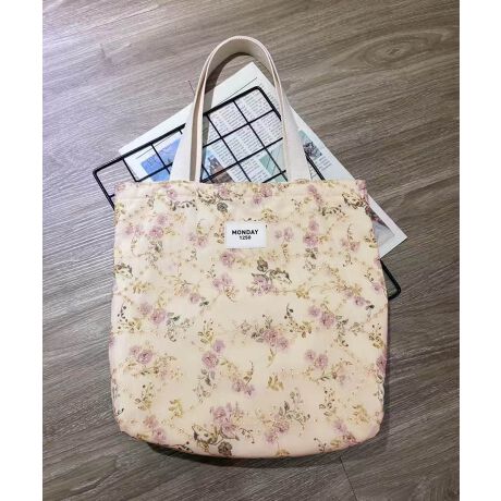 可憐な花柄とレース刺繍が女性らしさを引き立てるフェミニントートバッグ。
