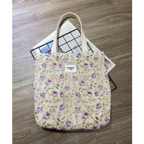 可憐な花柄とレース刺繍が女性らしさを引き立てるフェミニントートバッグ。