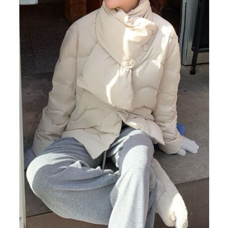 取り外せるマフラー襟が可愛いVネックデショートダウン。