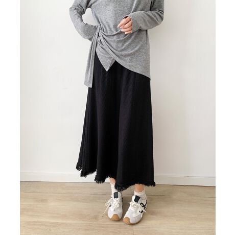 立体感のある編み模様が特徴のニットロングスカート。