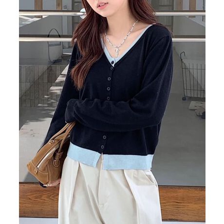 バイカラーVネックニットカーディガン