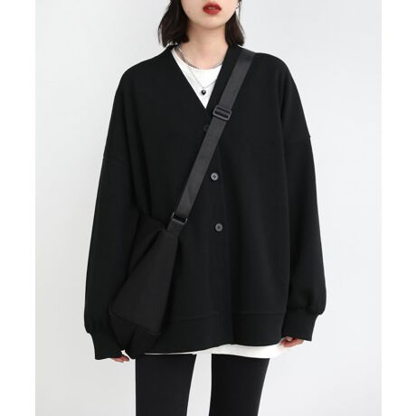 今っぽいゆるシルエットでこなれ感のあるスウェットカーディガン。