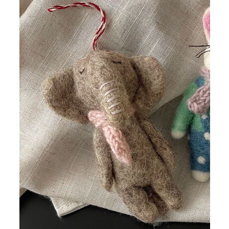 ハンドメイドのフェルト素材で作られた、やさしい雰囲気のアニマルオーナメントです。ゾウさんやお魚など、ちょっととぼけた表情がなんとも可愛い♪