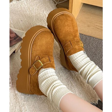 クラシックな雰囲気とトレンド感を兼ね備えた、スエード調の厚底シューズ。