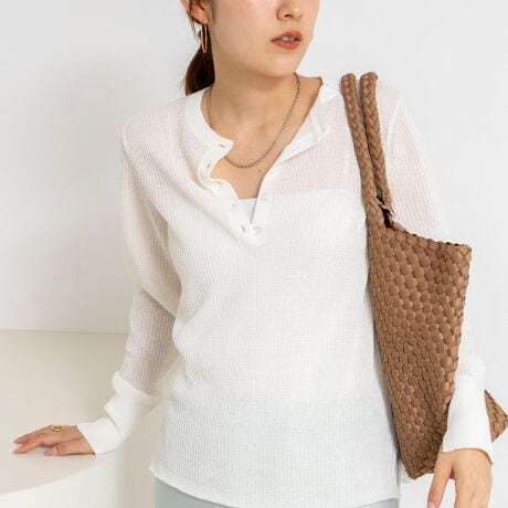 ・ほんのりシアー感のあるワッフル編地が、シンプルながらもこなれた印象に