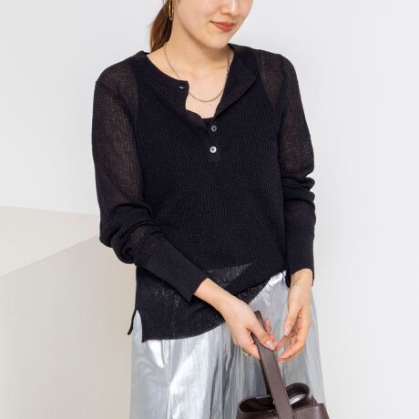 ・ほんのりシアー感のあるワッフル編地が、シンプルながらもこなれた印象に