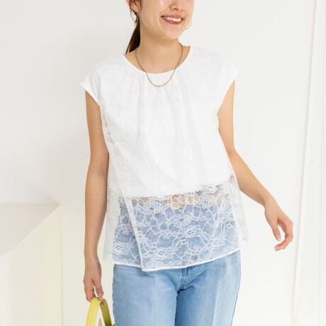 ・綿100%のスムースにレースを重ねた1枚着映えブラウス