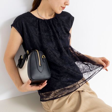 ・綿100%のスムースにレースを重ねた1枚着映えブラウス