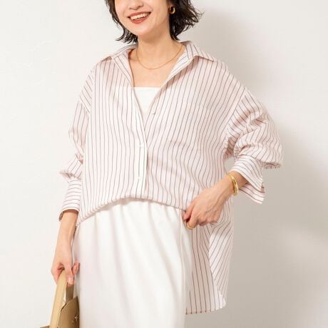 ・内側の釦で、前だけイン風、カシュクールの3通りの着方を楽めるマルチシャツ