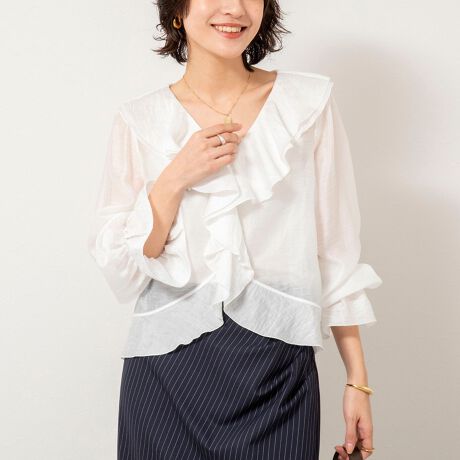 ・リネン混ならではのスラブ感のある表情のシアー素材を使用したブラウス