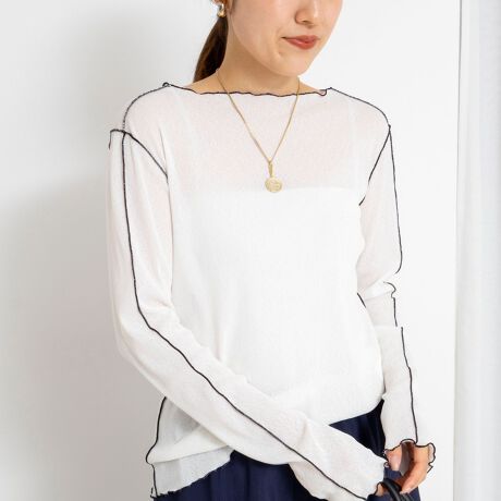 ・配色のメロー始末がさりげないアクセントとなり、大人のカジュアルスタイルに程よい遊び心をプラス
