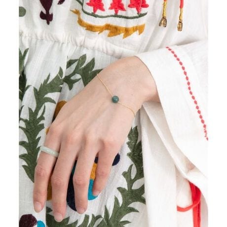 [型番:CKOZ6121-2026]翡翠は古来「魂を癒す石」として、シルクロードを旅する人々に護符として携えられてきました。中央に配した翡翠が静かな存在感を放つ、石の意味を引き立てるシンプルな祈りのブレスレット。