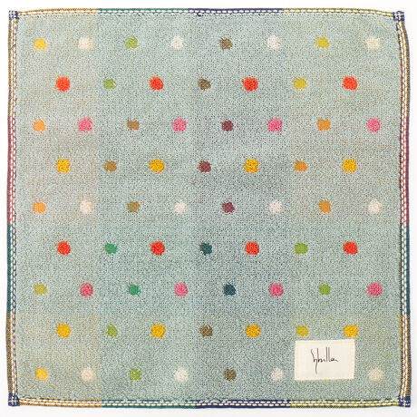 [型番:1430550036]Azulejos(アズレージョス・装飾タイル)地織の糸色を変化させ作りました。カラフルで楽しいドット柄です。しっかりとした手持ち感が人気のタオルハンカチーフ。タオルの機能を追求したシンプルなデザインです。[Sybilla]スペインのデザイナー、シビラがデザインするブランド。ナチュラル&エコロジーをテーマに明るく、強く、人生を堪能している女性を賛歌するように咲き誇る花がモチーフとなっています。