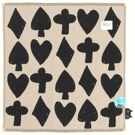 デザイナーが手ずから描いたトランプの柄です。人気の高いモノトーンのガーゼに新しい風を吹かせたいと思いデザインしています。