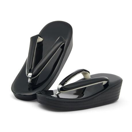 つややかなエナメルの天と同じくエナメルの鼻緒や、べロア生地のふっくらとした太鼻緒は、シンプルでお着物に合わせやすい無地です。