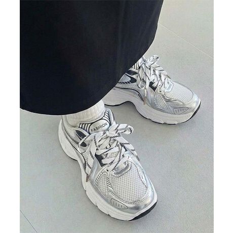 軽量厚底3.5cm ボリュームソールスニーカー オールシーズン メタリック シルバー