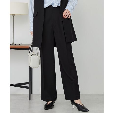 ウエストのタックとセンタープレスが縦ラインを強調し、すっきりとした美脚シルエットに。