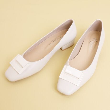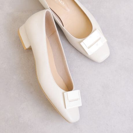 【26春夏新作】スクエアオーナメント ローヒールパンプス