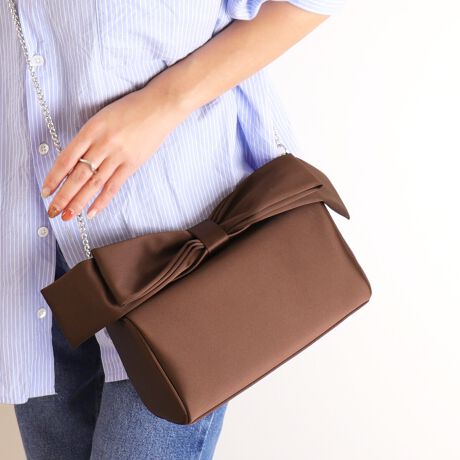 【26春夏新作】チェーンショルダー付属 2WAYリボンハンドルサテンバッグ
