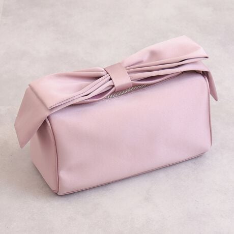 ・シンプルなボディにハンドルのビッグリボンがポイントのフェミニンなバッグ。