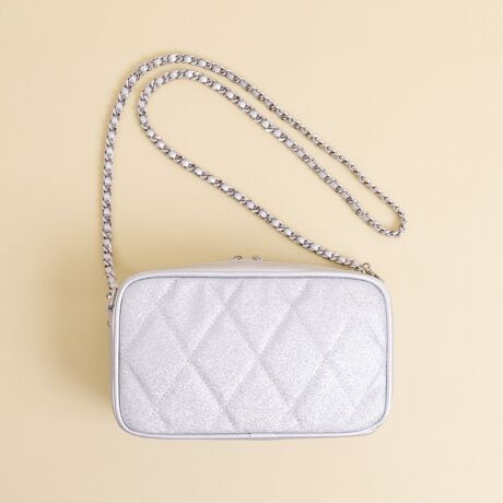 ・細かいラメとダイヤキルティングが上品なショルダーバッグ。